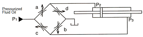 Thy typical servo-valve is normally in the shape of a 4 port spool valve. The spool position can be adjusted from close to full open continuously and without steps. So you may regard it as that the opening of each port is controlled by analog signal. Therefore it is convenient to thank that the basic structure of servo-valve is identical to the diagram below which shows that 4 valves are placed and connected on a square shape.