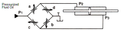 The previous section elaborates on the fact that servo-valves are equivalent to the four valves which are aligned and connected as shown below. We can regard the setting in which all four valves are half open is identical to the neutral position of servo-valves.